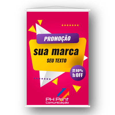 Impressão de alta qualidade em lona fosca com acabamento premium (madeira, ponteira e cordinha). Ideal para divulgação interna ou externa, com resistência mínima de 1 ano. Produção rápida: 1 a 2 dias após aprovação. Personalize o seu e destaque-se!